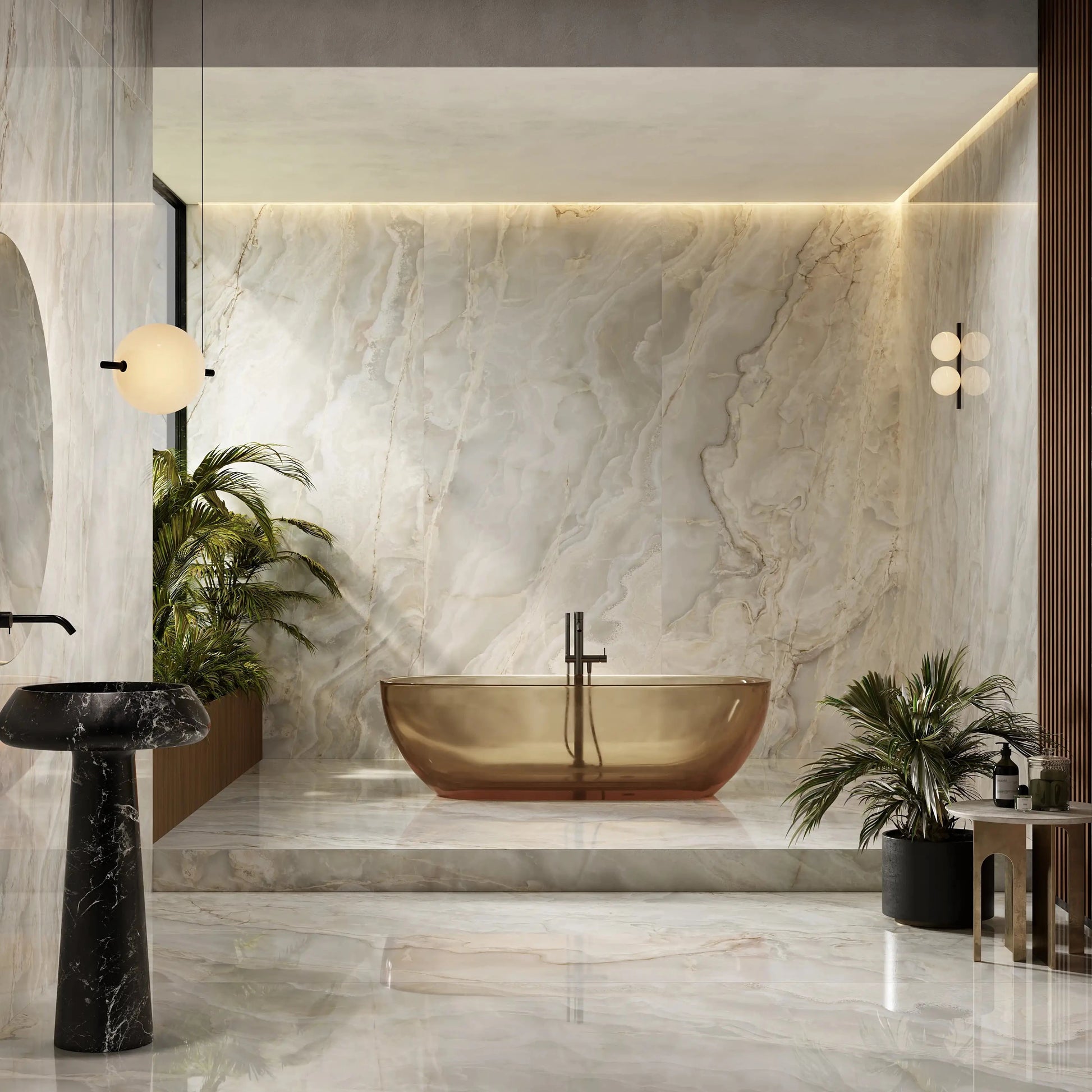AVA Onice Iride Avorio White Marble Polished Porcelain Wall and Floor Tile